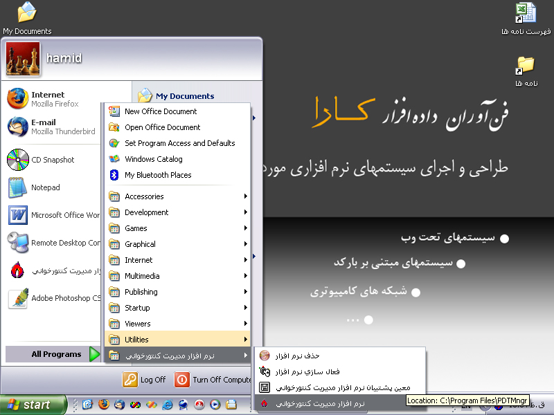 پس از کلیک بر روی دکمه بستن برنامه نصاب بسته می شود. در این حالت میانبرهای نرم افزار بر روی میز کار و منوی شروع قرار گرفته اند: