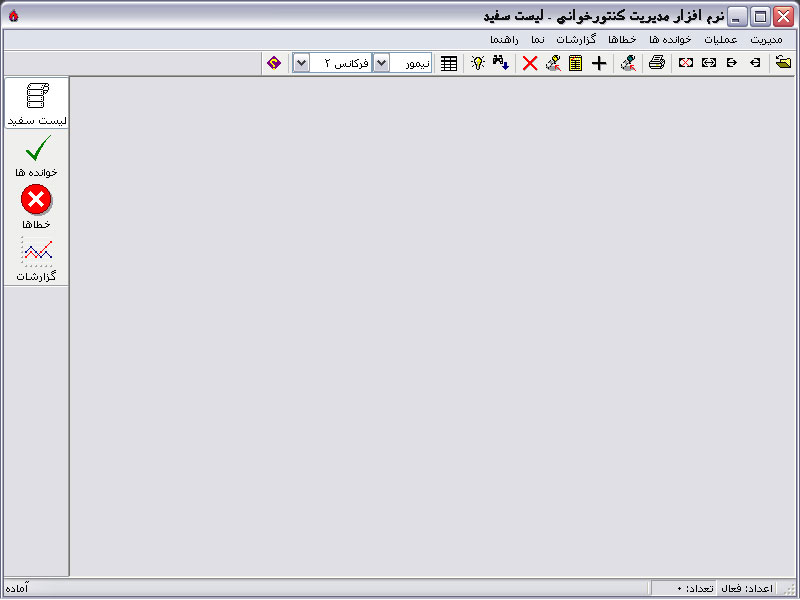 در سمت چپ محیط نرم افزار نوار انتخاب داده های نمایان (اطلاعاتی که در جدول میانی محیط نرم افزار نشان داده خواهد شد) قرار گرفته است که می توانید با استفاده از آن نوع داده های نمایان (لیست سفید یا خوانده ها، خطاها و یا گزارشات) در جدول میانی محیط نرم افزار و همچنین نوع دکمه های در دسترس نوار ابزار نرم افزار را تعیین نمایید: