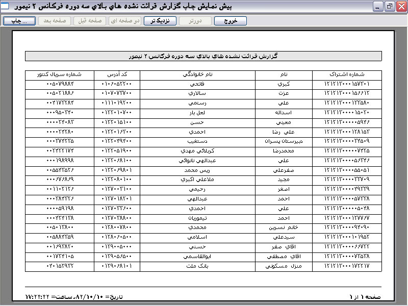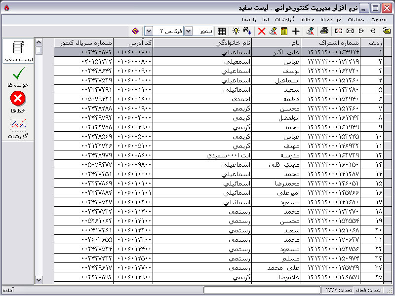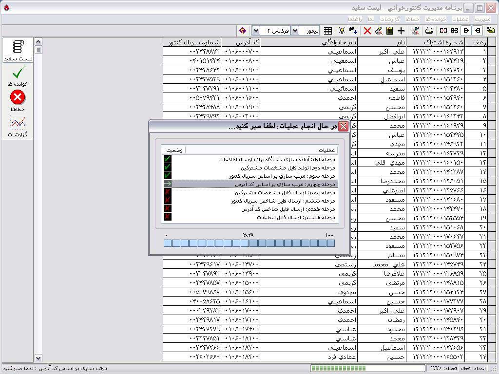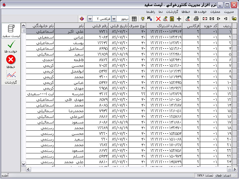 پس از پایان فرایند جدول میانی نرم افزار با اطلاعات موجود در لیست سفید به ترتیب کد آدرس پر می شود و تعداد مشترکین موجود در نوار وضعیت ثبت می گردد: